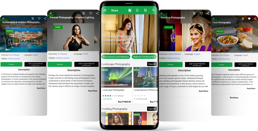 Online Photography Courses from Beginners to Advanced. The expertise of Pixel Viilage has joined hands to impart their knowledge in photography through live video feeds and connecting to those who crave to become experts by making them available through online sessions as well. The live streamed sessions and video feeds for aims in offering the possibility of you to learn photography, online at the comfort of your home. The online photography courses made available in this site as free sessions or webinars with minimal cost focuses on fundamentals as well as lessons on mobile photography, wedding photography, landscape photography and so on.